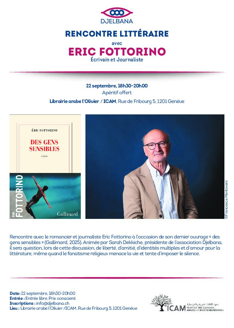 Echange animé par Sarah Dekkiche, Présidente de Djelbana, suivi d’une séance dédicace et d’un apéritif.
